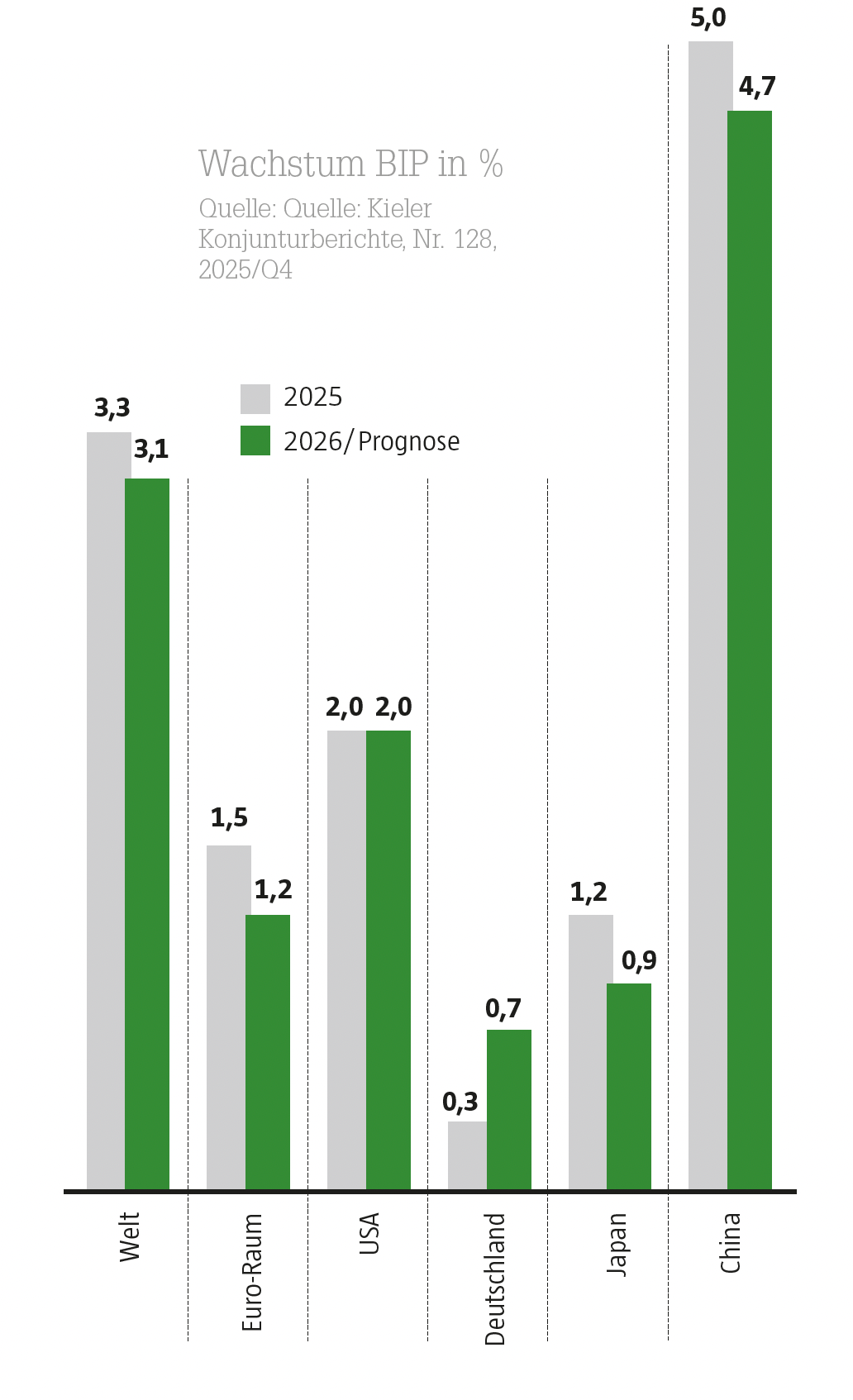 Zwar sorgte die neue US-Administration gerade im ersten Halbjahr für erhebliche Verunsicherung weltweit, dennoch expandierte die Weltwirtschaft in den ersten drei Quartalen 2025 relativ robust. Verschiedene Indikatoren deuten darauf hin, dass sich diese Dynamik – endgültige Daten liegen noch nicht vor – im vierten Quartal fortgesetzt hat.